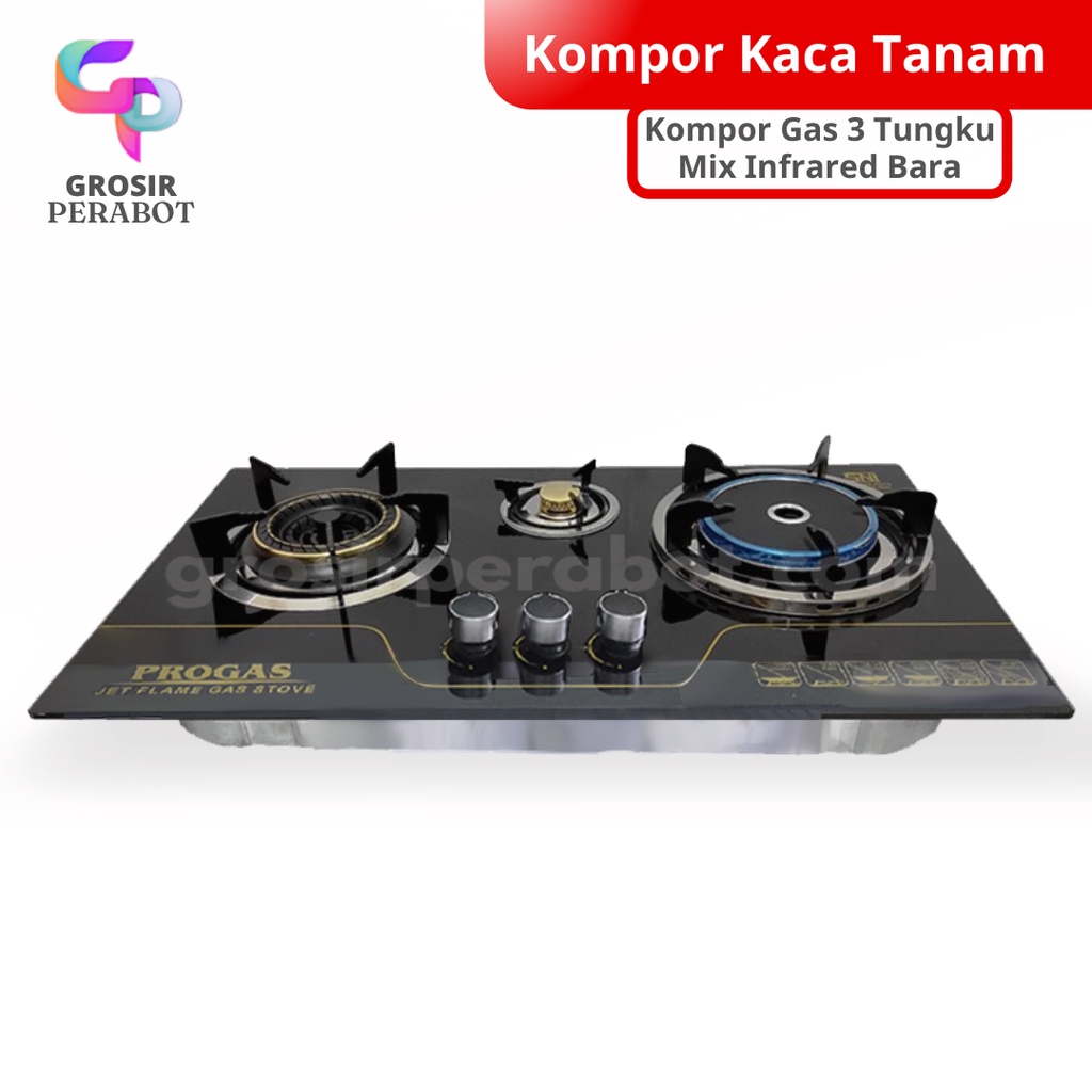 Jual Kompor Gas Kaca Tanam 3 Tungku Mix Bara Merk Progas Termurah Indonesia Shopee Indonesia